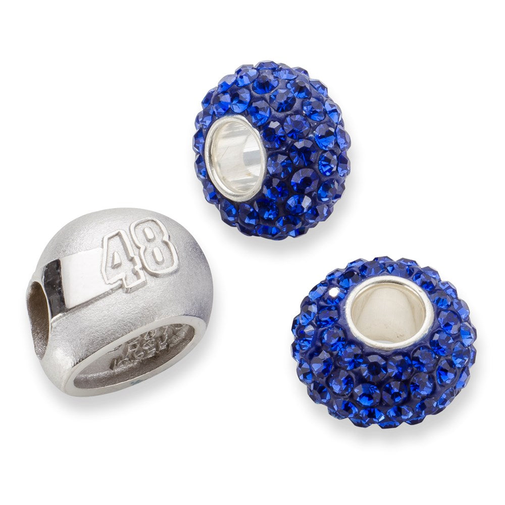 Sport,NASCAR #48 Jimmie Johnson 2 Crystal Helmet Charm Bead Set in Sterling Silver