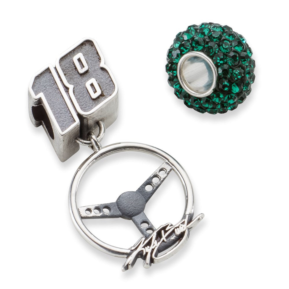 One Dark Green Crystal Charm Beadwith 18 Charm Bead & Steering Wheel in Sterling Silver