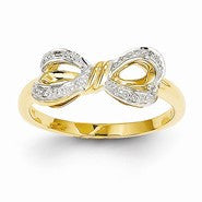 14k Yellow Gold Rhodium Diamond Bow Ring