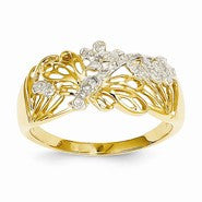 14k Yellow Gold Rhodium Diamond Dragonfly Ring