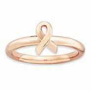 18k Rose Gold Plated Sterling Silver Awareness Ribbon, Size 7