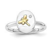 Sterling Silver & 14k Dragonfly Diamond Ring