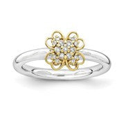 Sterling Silver & 14k RG-plated Diamond Flower Ring