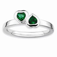 Sterling Silver Emerald Double Heart Ring