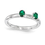Sterling Silver Emerald Two Stone Ring