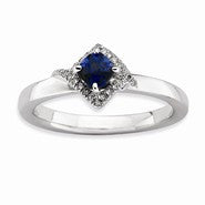 Sterling Silver Polished Sapphire & Diamond Ring