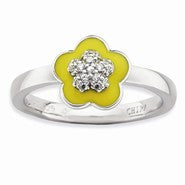 Sterling Silver Polished Yellow Enameled & CZ Ring