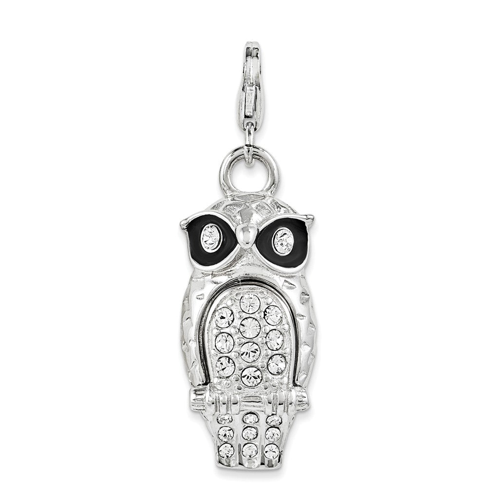 Enamel Swarovski Element Owl Charm in Sterling Silver