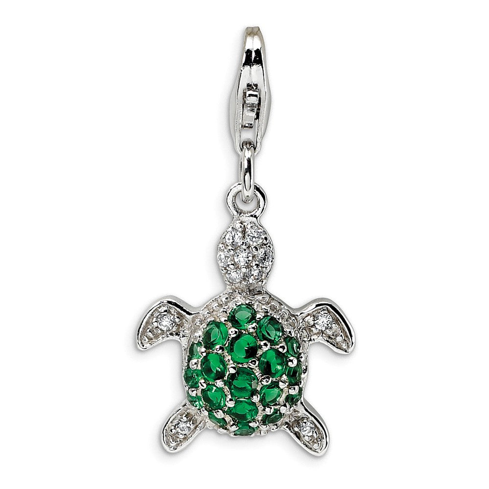 Green & Clear CZ Turtle Charm in Sterling Silver