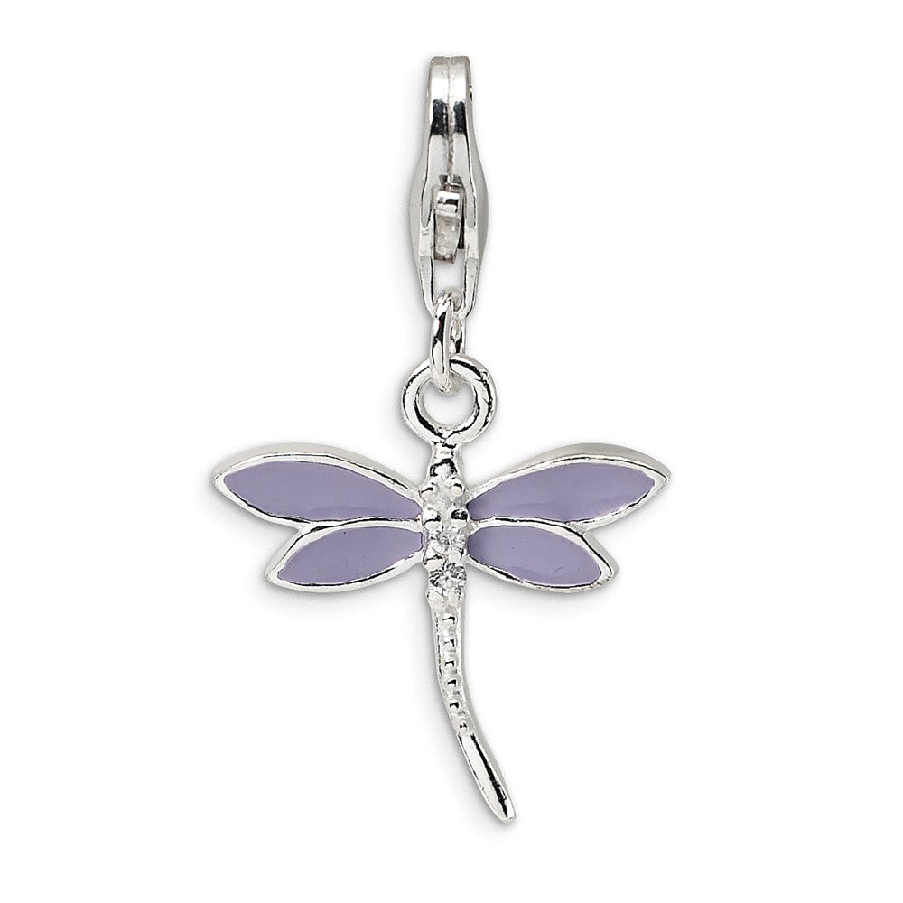 Lilac Enameled & CZ Dragonfly Charm in Sterling Silver
