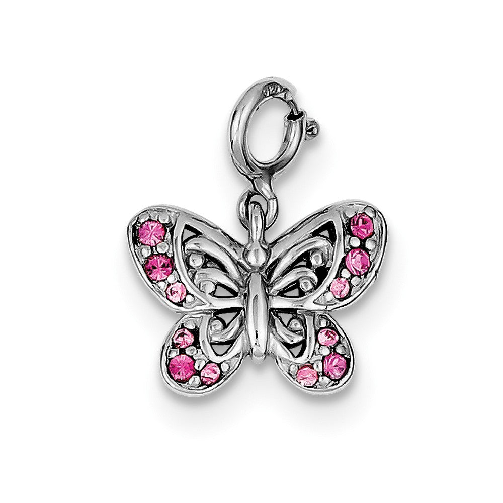 Pink CZ Butterfly Charm in Sterling Silver