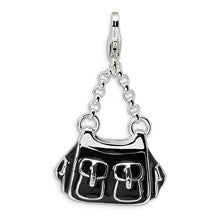 3-D Enameled Black Handbag Charm in Sterling Silver