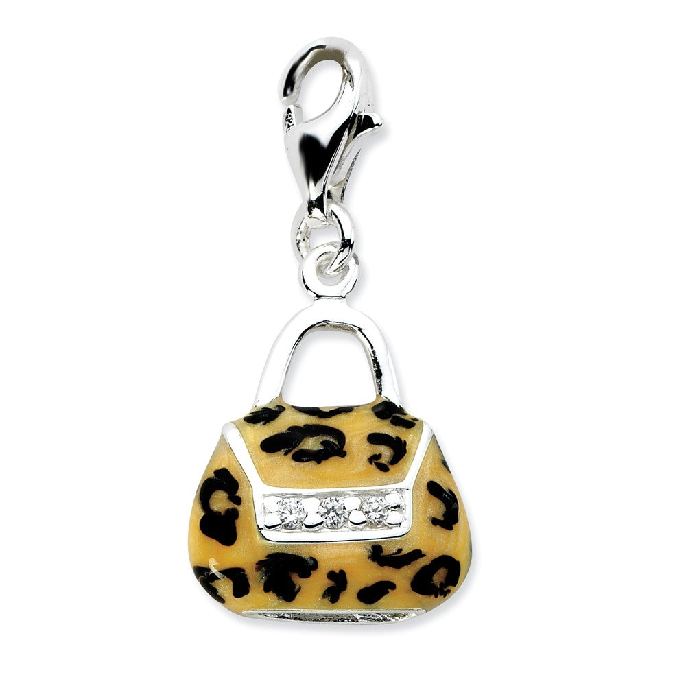 Click-on CZ Enamel Leopard Purse Charm in Sterling Silver