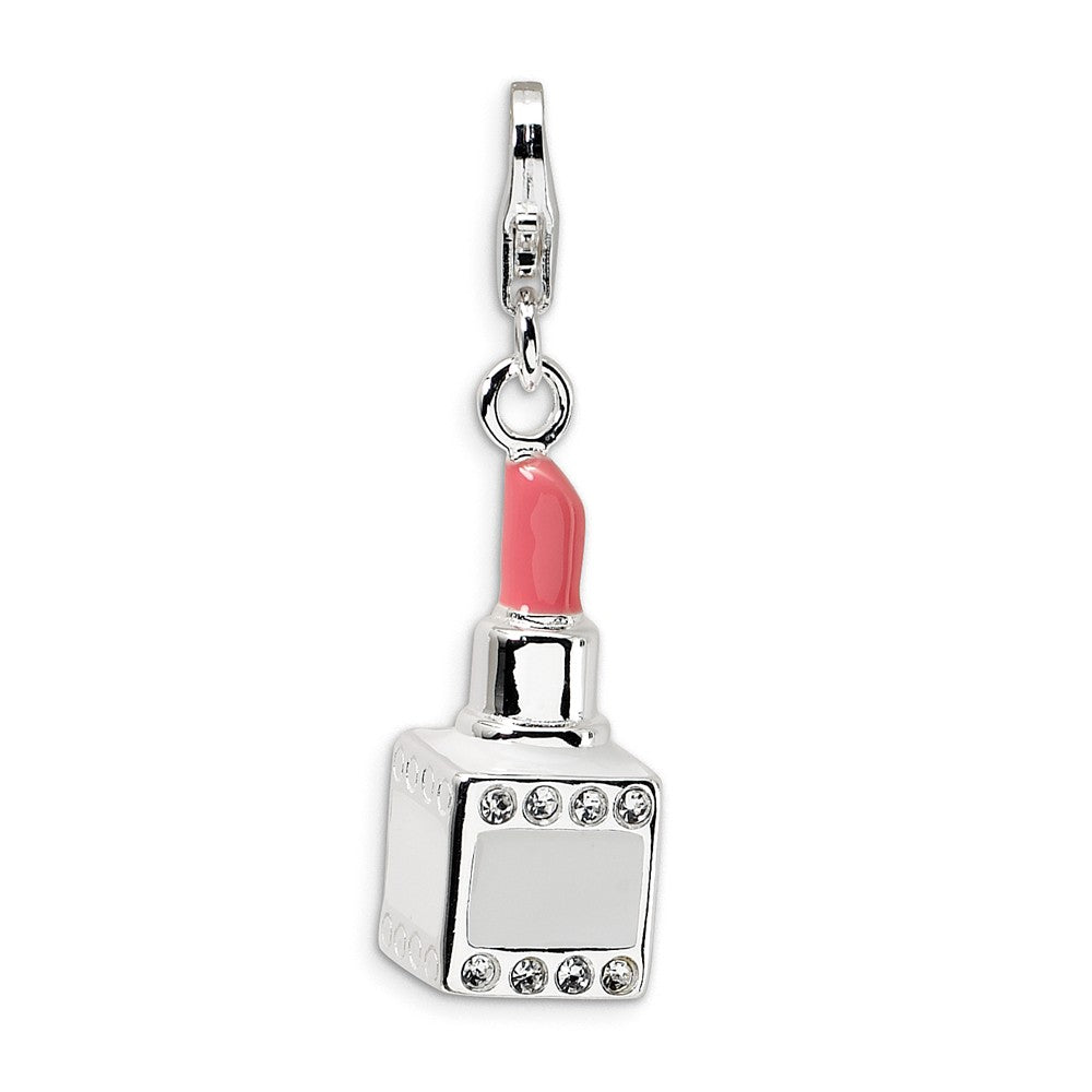 Enamel Swarovski Element Pink Lipstick Charm in Sterling Silver