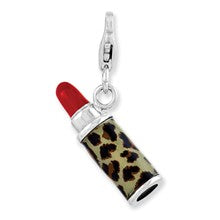 Enameled 3-D Leopard Lipstick Charm in Sterling Silver