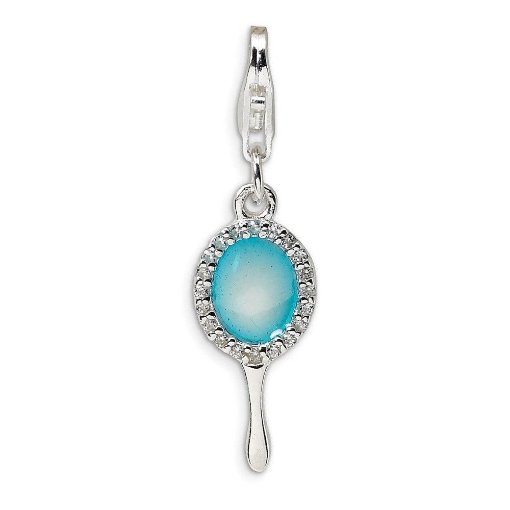 Enameled & CZ Hand Mirror Charm in Sterling Silver