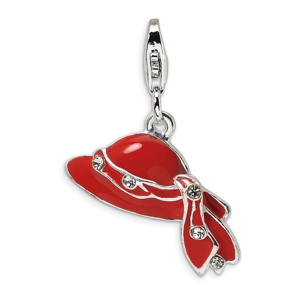 Red Enameled & CZ Hat Charm in Sterling Silver