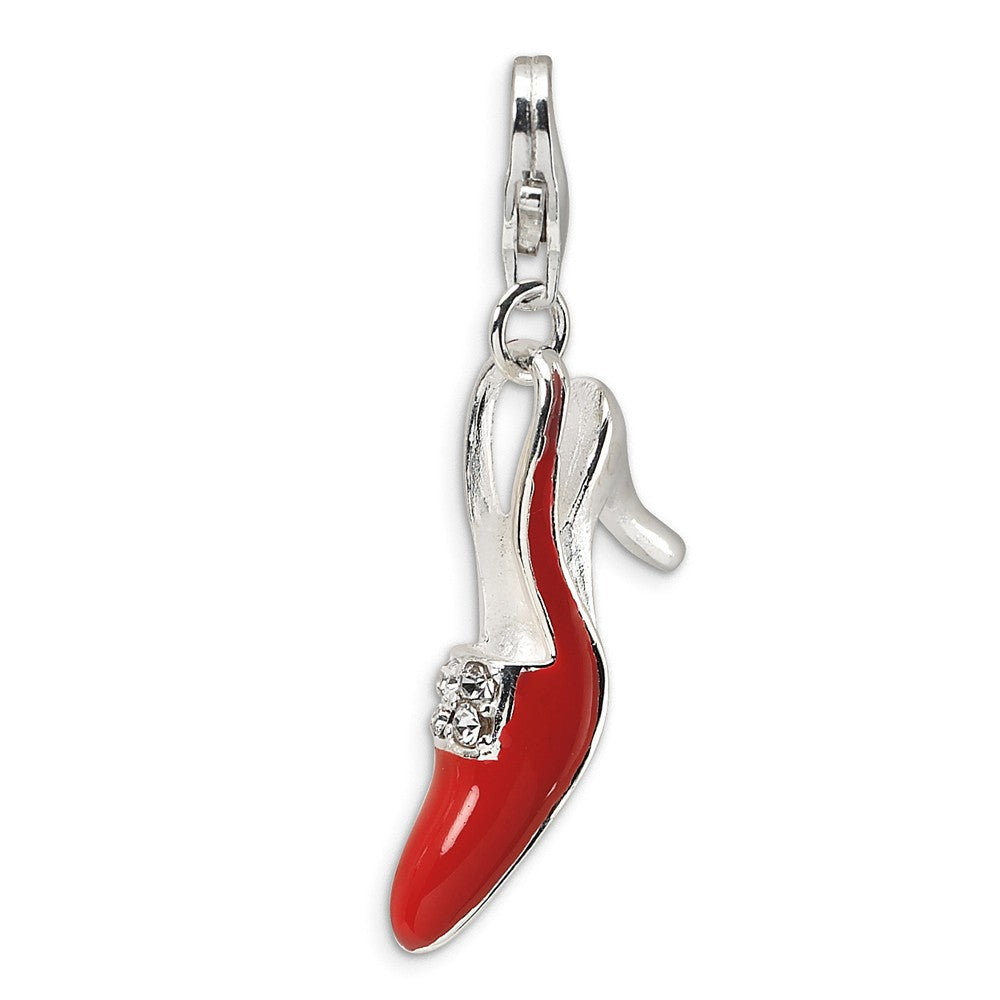 If you're looking to be the center of attention, you'll need this Sterling Silver Red Enameled & CZ High Heel Shoe Charm. This piece makes a great addition to any charm bracelet.