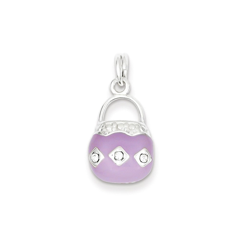 Sterling Silver Purple Enameled & CZ Purse Charm hide-image