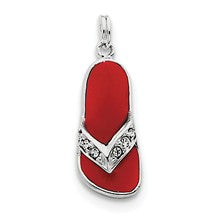 Red Enameled CZ Flip Flop Charm in Sterling Silver