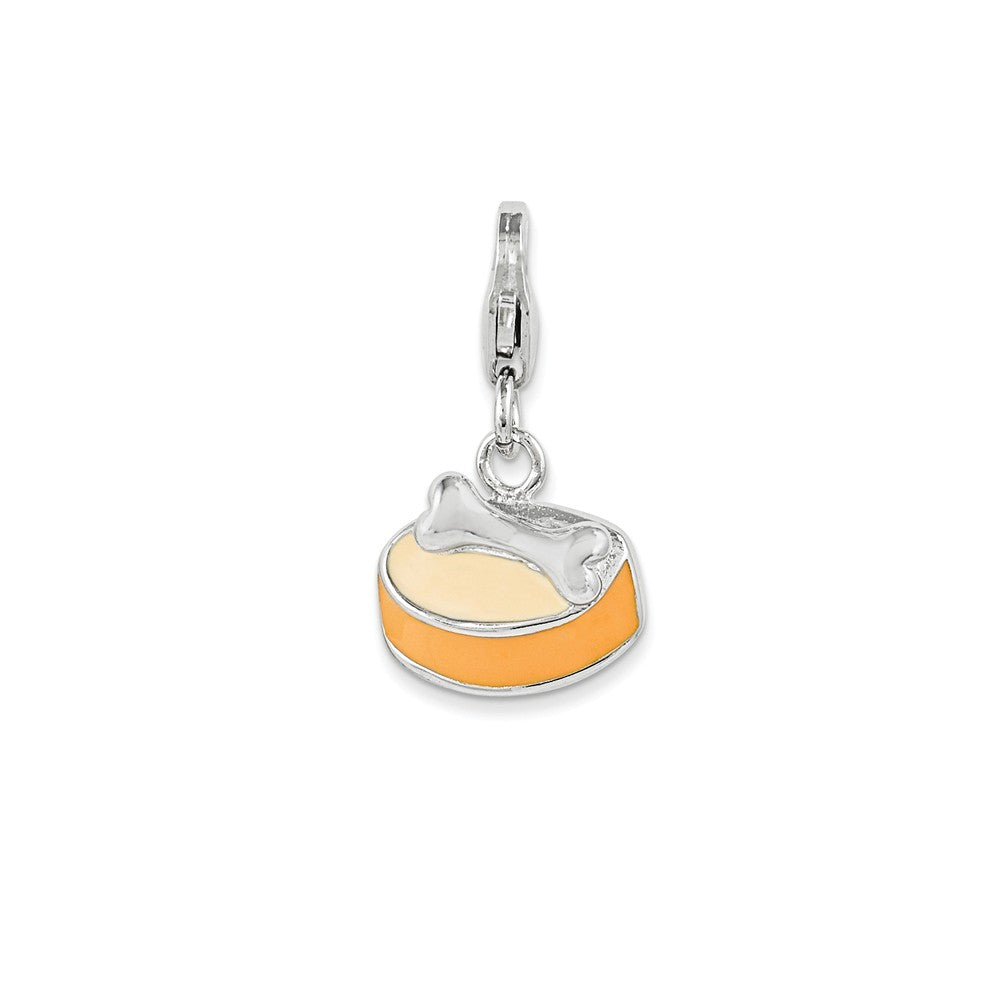 Enamel Dog Bowl w/ Bone Charm in Sterling Silver