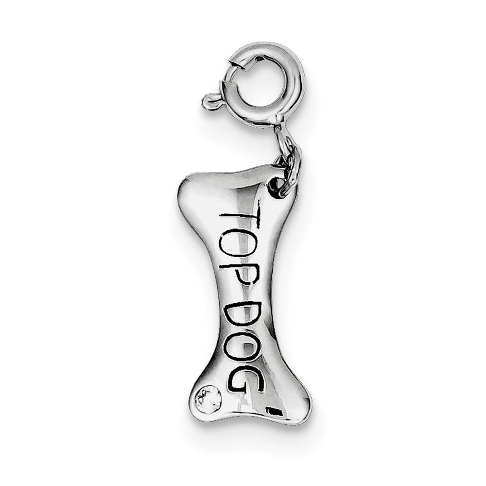 CZ Dog Bone Top Dog Charm in Sterling Silver