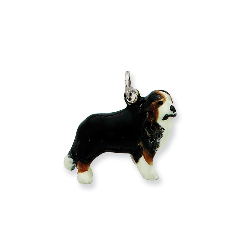 Enameled Bernese Mountain Dog Charm in Sterling Silver