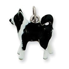 Enameled Border Collie Dog Charm in Sterling Silver