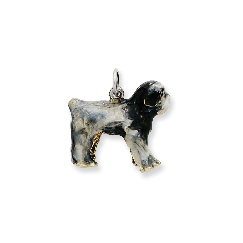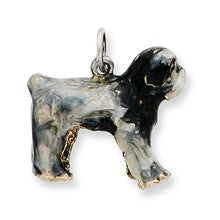Enameled Old English Sheepdog Charm in Sterling Silver