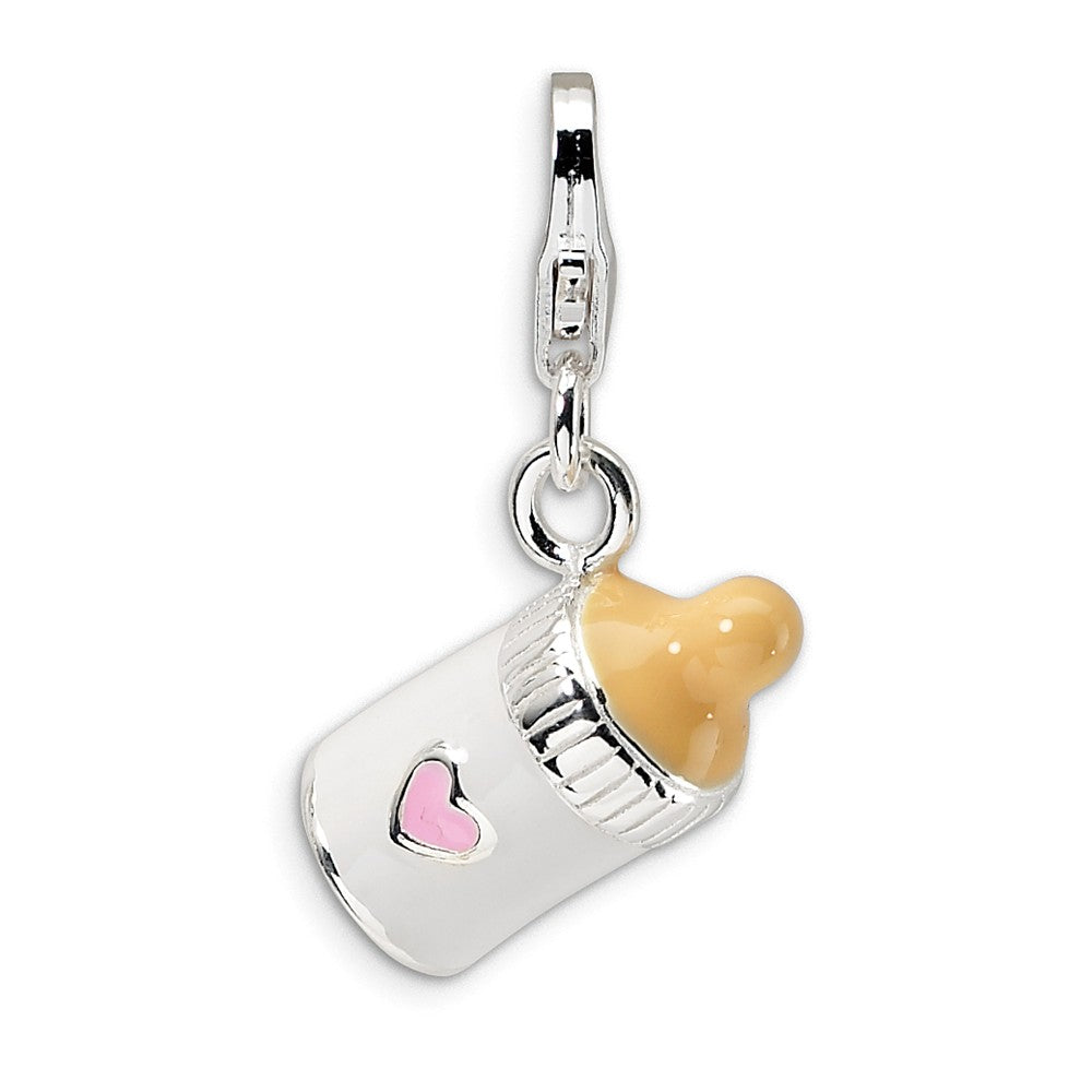 3-D Enameled Baby Bottle Charm in Sterling Silver