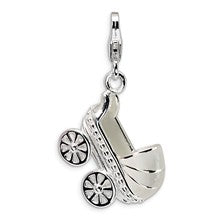 3-D Enameled Baby Carriage Charm in Sterling Silver