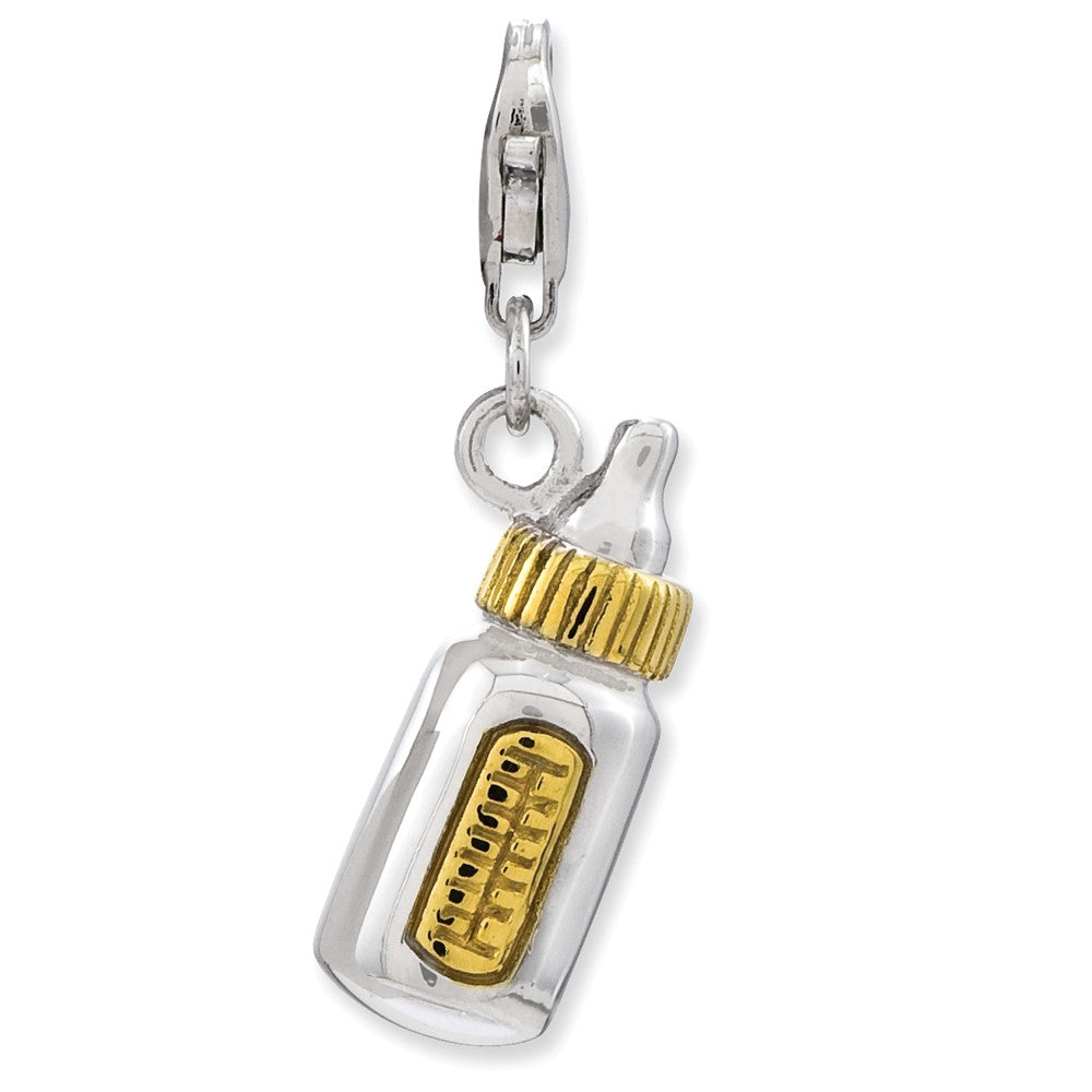 3-D Gold Plated Baby Bottle Charm in Sterling Silver
