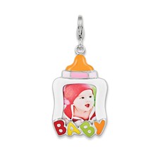 Rhodium Enameled Baby Picture Frame Charm in Sterling Silver