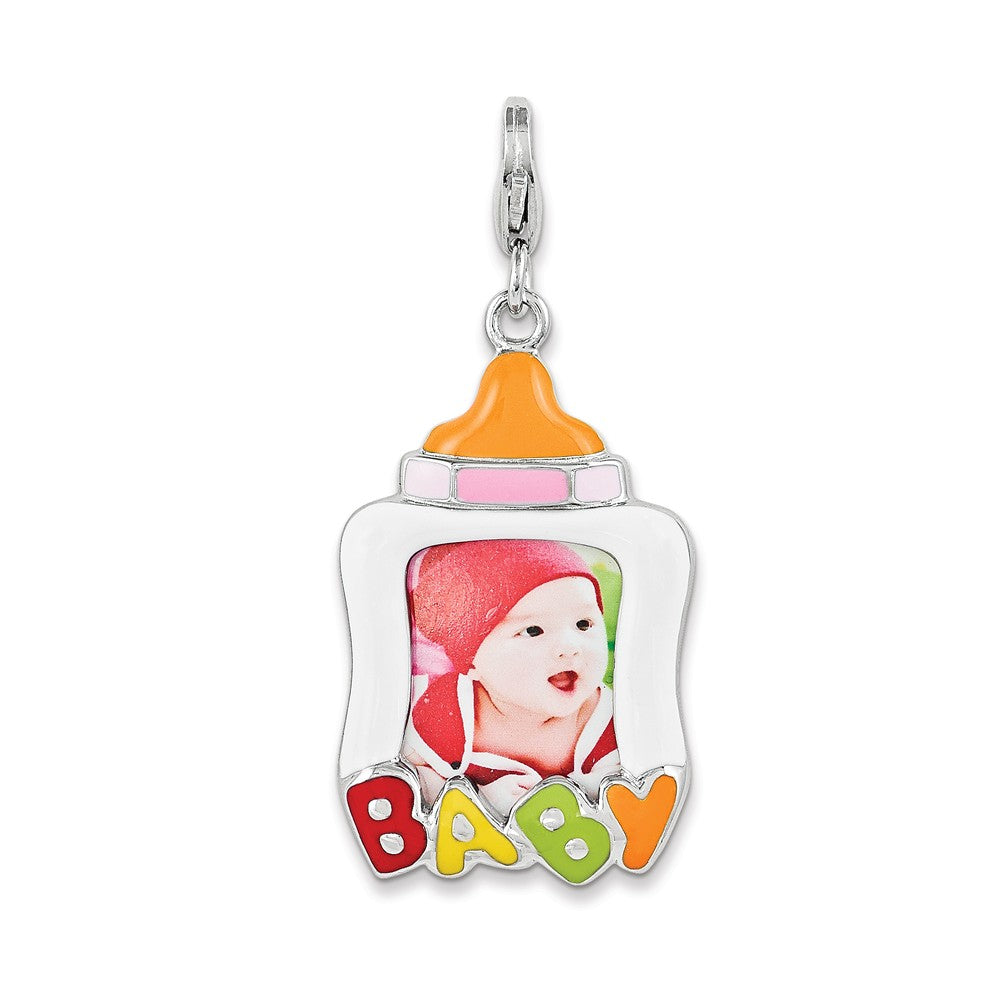 Amore La Vita Sterling Silver Rhodium Enameled Baby Picture Frame Charm hide-image