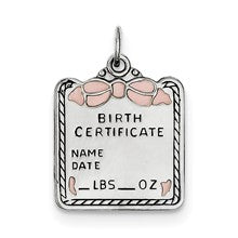 Sterling Silver Pink Birth Certificate Charm hide-image