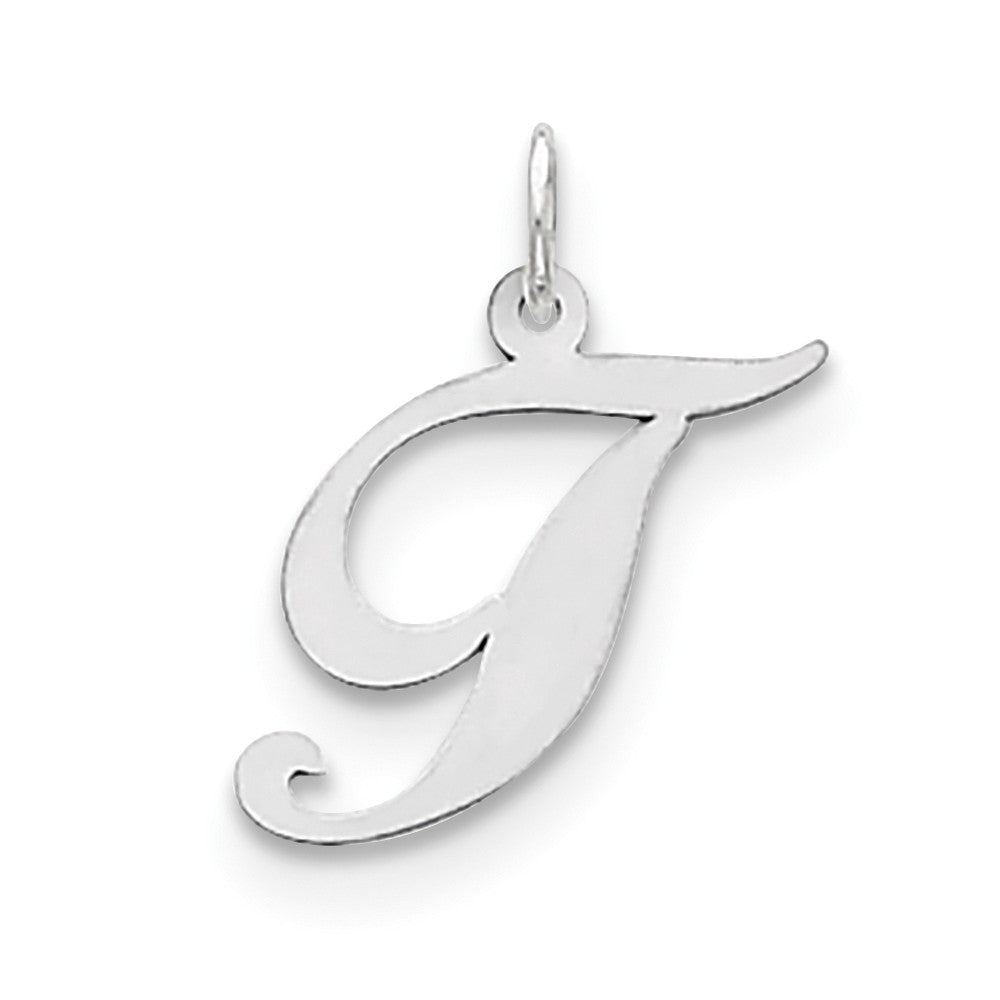 Medium Fancy Script Initial T Charm in Sterling Silver