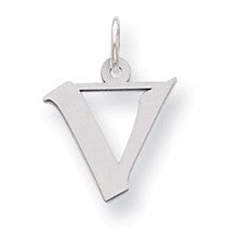 Sterling Silver Small Artisan Block Initial V Charm hide-image