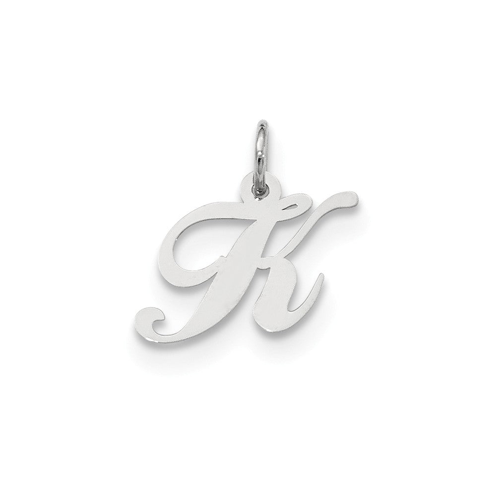 Small Fancy Script Initial K Charm in Sterling Silver