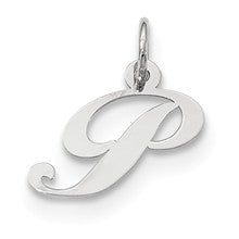 Small Fancy Script Initial P Charm in Sterling Silver