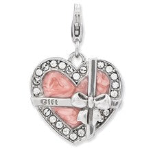 Enameled Heart w/Bow Wrapped Charm in Sterling Silver