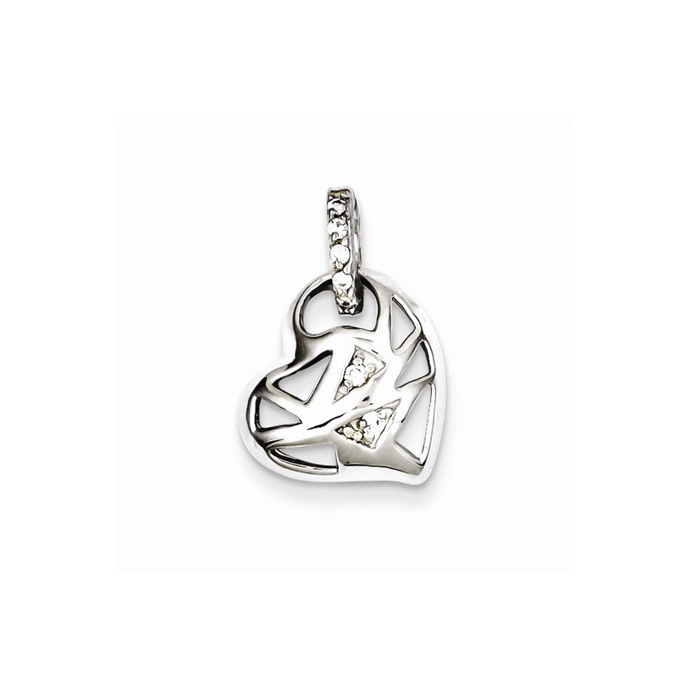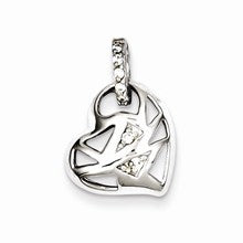 Rhodium Plated CZ Heart Charm in Sterling Silver