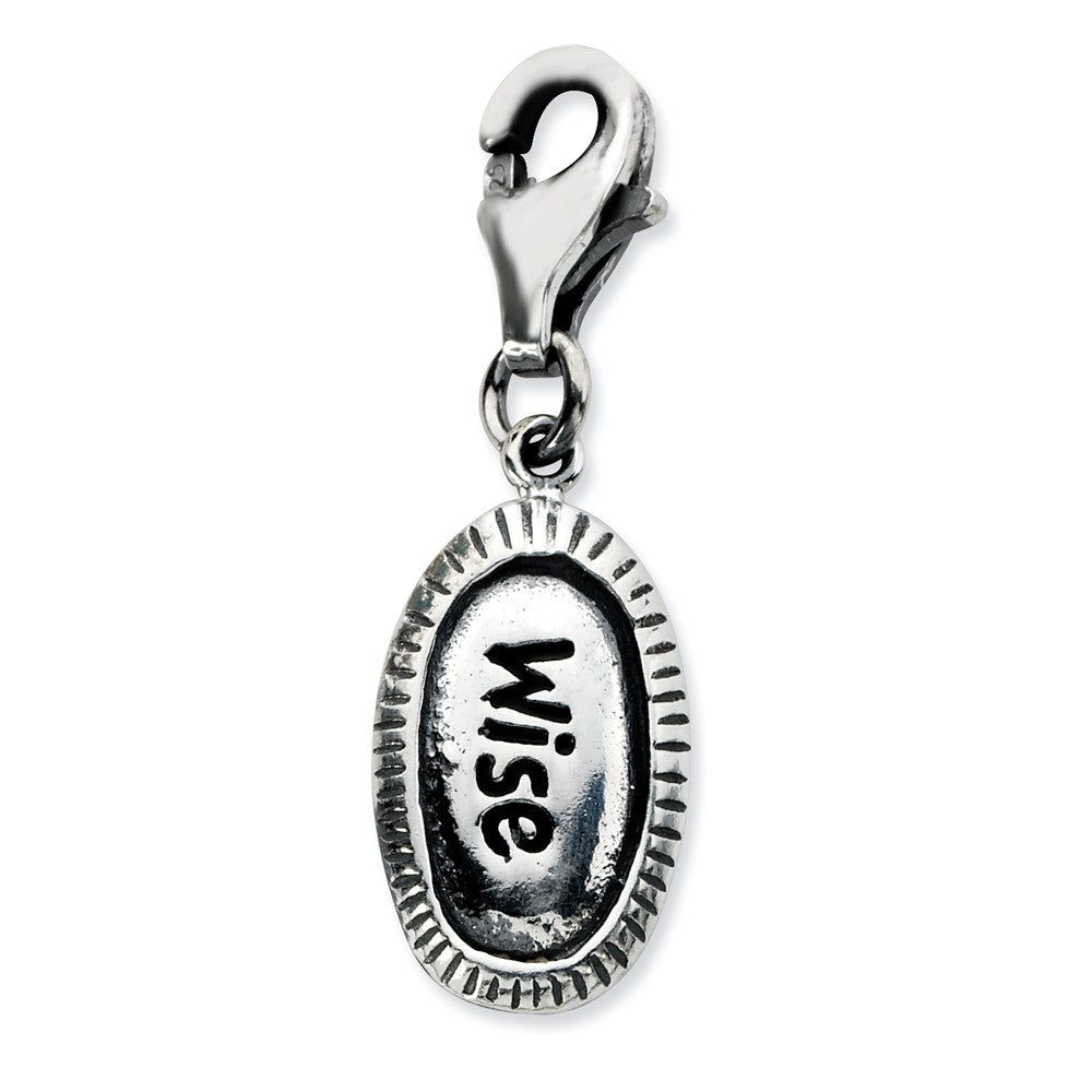 Antiqued WISE Charm in Sterling Silver