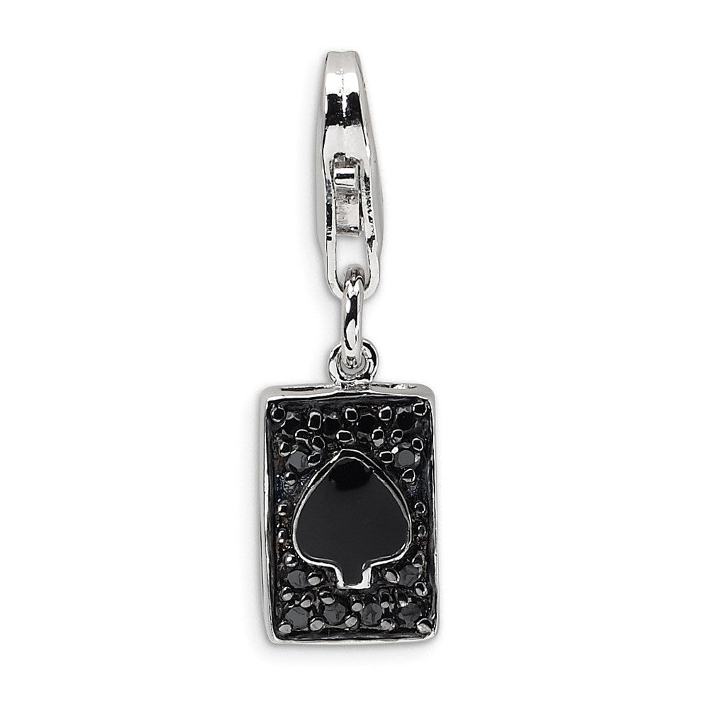 CZ & Enameled Spade Card Charm in Sterling Silver