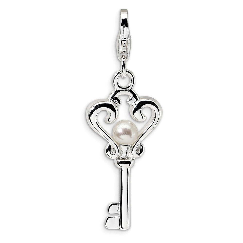 Freshwater Cultured Pearl Key Charm in Sterling Silver