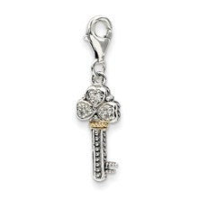 Diamond Antique Key Charm in Sterling Silver W/14k Gold