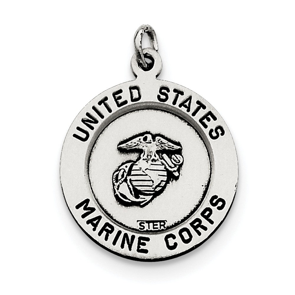 Antiqued Saint Michael Marine Corp Medal, Charm in Sterling Silver