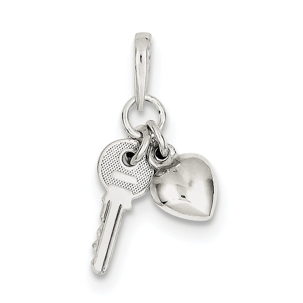 Heart with Key Charm in Sterling Silver