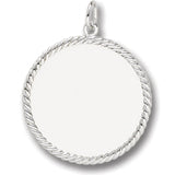 Protected by our Lifetime Warranty! Free ShippingA rope of many strands is not easily broken and makes a great border on this disc With the strength of the twisted rope and the beauty of a circle this Sterling Silver engravable Rope Disc charm goes great in any charm collection!Height: 1.125 in. ~ (27.7777777777778 mm) Width: 1.125 in. ~ (28 mm)...