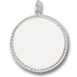 Protected by our Lifetime Warranty!With the strength of the twisted rope and the beauty of a circle this Sterling Silver engravable Rope Disc charm goes great in any charm collection!Height: 7/8 in. ~ (21.84 mm)Width: 7/8 in. ~ (20.81 mm)Sterling Silver charm for charm braceletsHandcrafted High Polish FinishRembrandt charms 30 Day Money Back Guarantee Free U.S. Shipping for orders over...