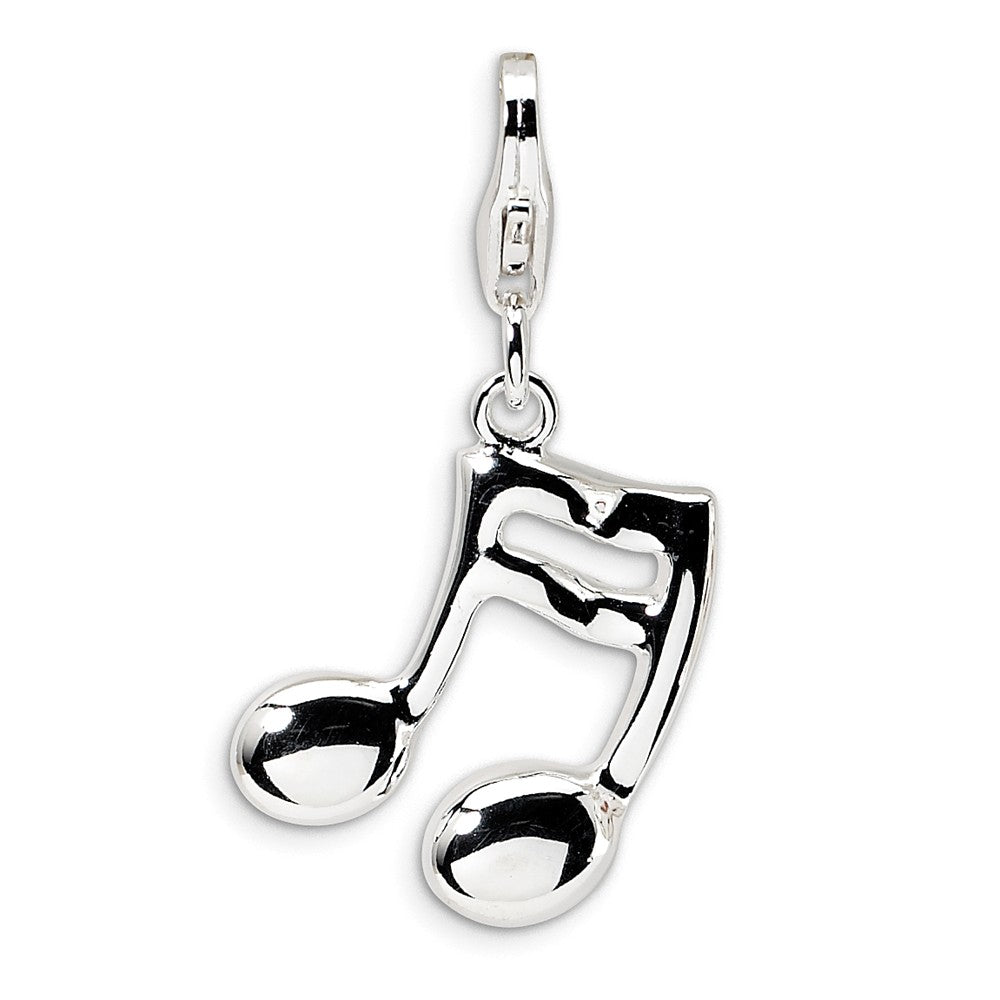 2-D Enameled on Back Musical Note Charm in Sterling Silver